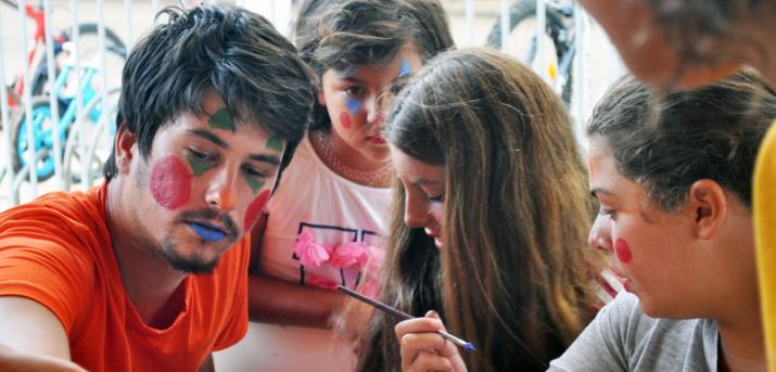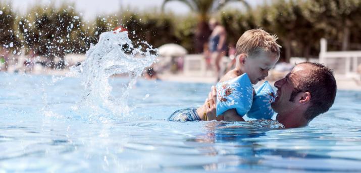 Autocaravana, dos adultos, dos niños